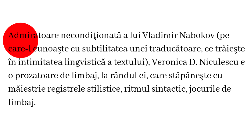 E greu de spus ce face mai bine Veronica D. Niculescu: traducere literara sau proza. Este exceptionala in amandoua!